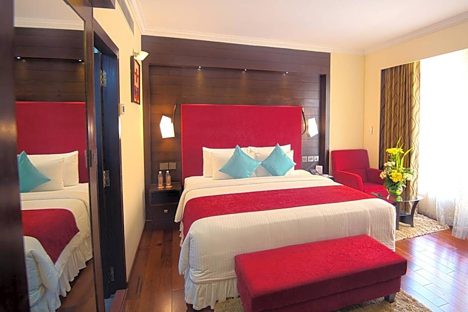 Deluxe Room Featuring a two-seater couch, Dual door mini-bar, a spacious work station, modern air-conditioned rooms have a flat-screen TV, mini-bar and personal safe.